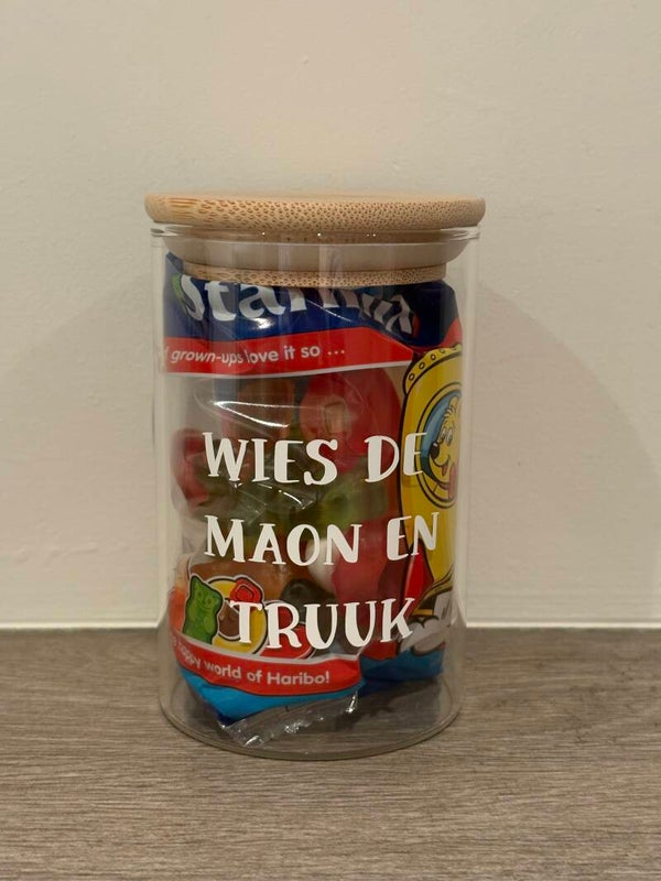 Deze snoep- en snackpotjes met Venlose tekst zijn gevuld met snoepgoed dat past bij de tekst op het potje. Elk potje vormt zo een leuk en compleet geheel: de tekst, de inhoud en de uitstraling sluiten perfect op elkaar aan.