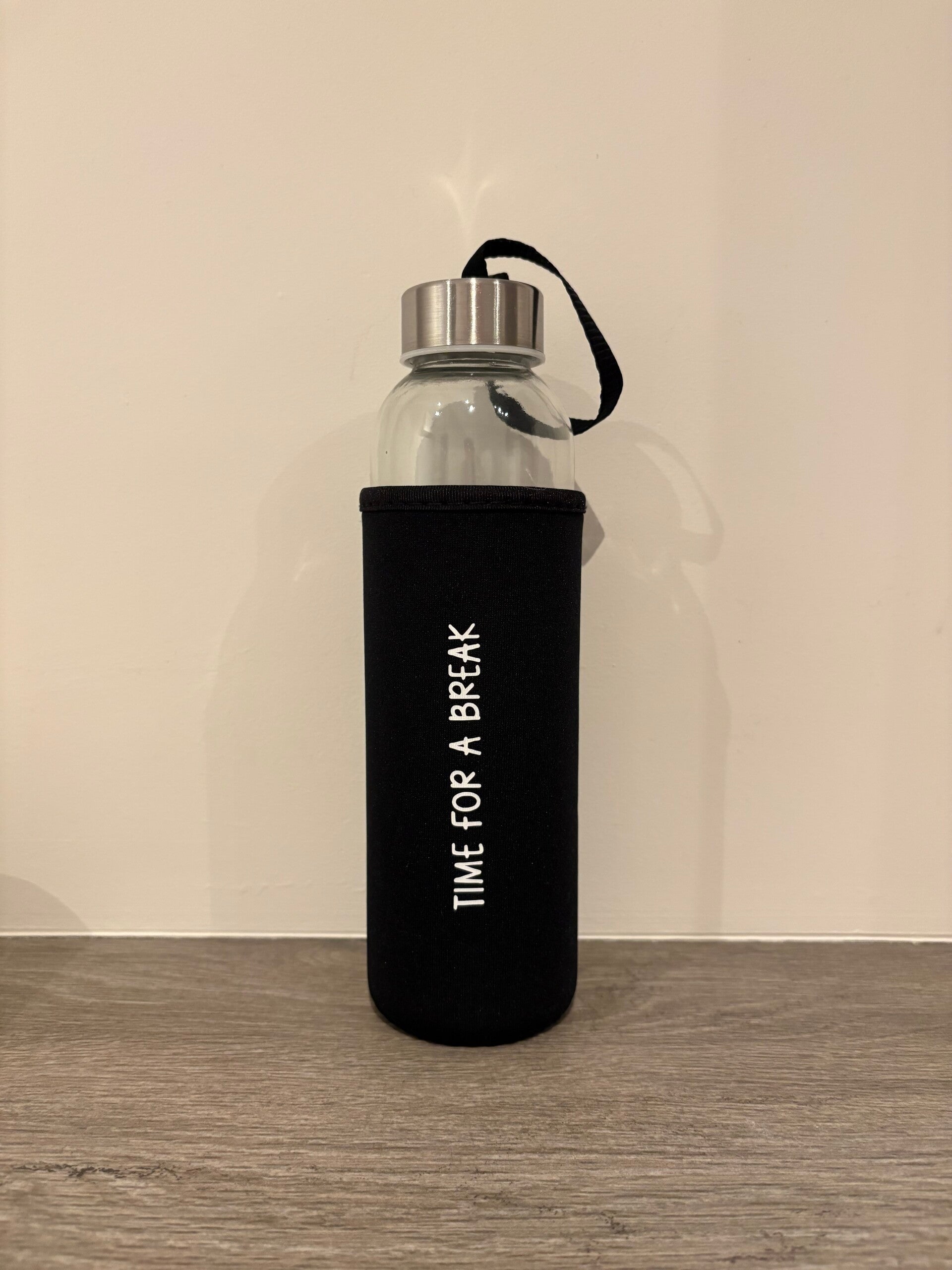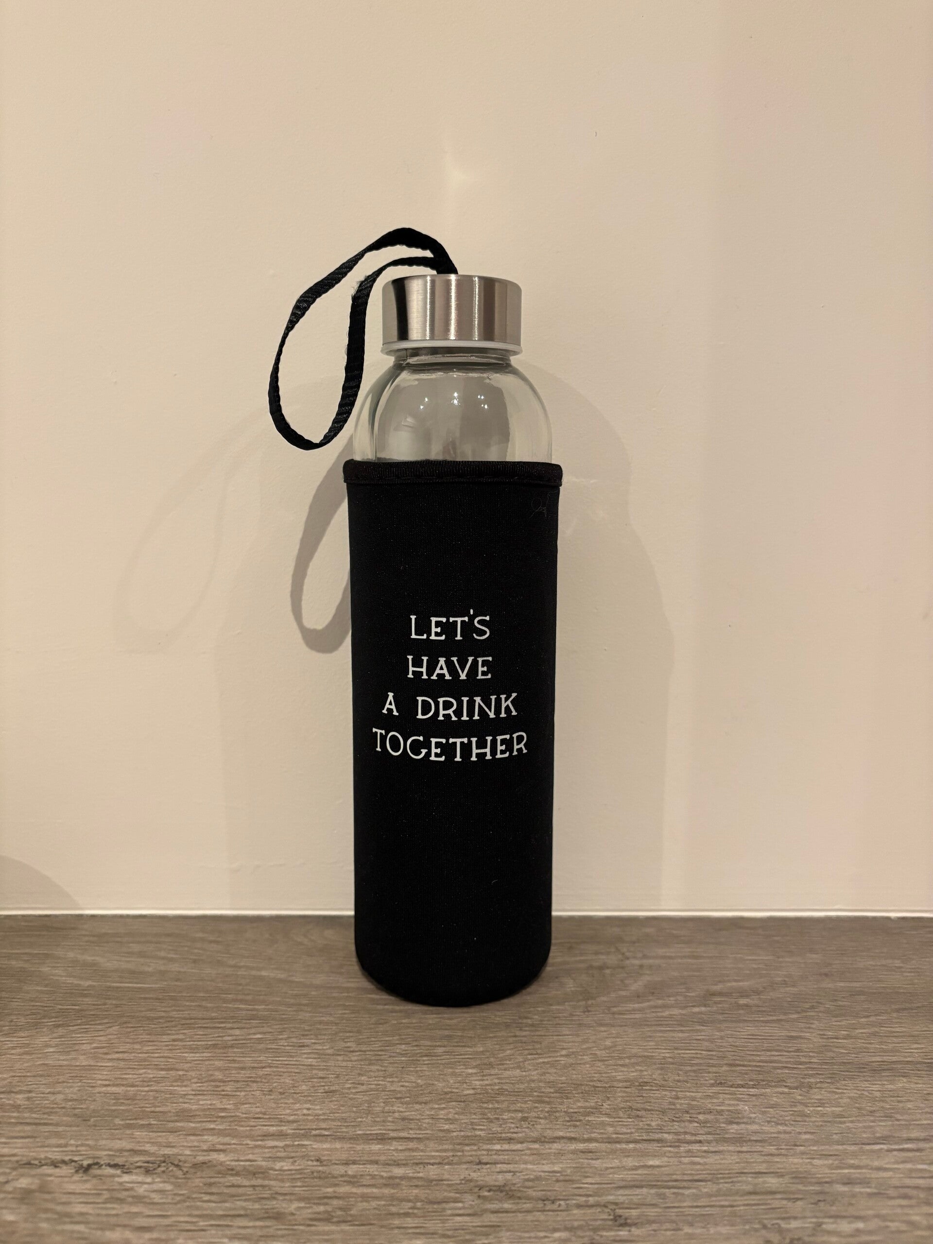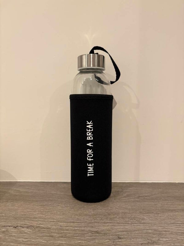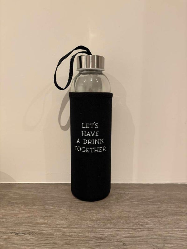 Deze glazen water/drinkfles wordt geleverd met een afneembare hoes met leuke tekst. De hoes helpt je drankje langer warm of koel te houden én ligt prettig in de hand. Omdat de tekst op de hoes staat, kan de glazen fles gewoon in de vaatwasser. Praktisch, duurzaam en met aandacht ontworpen - perfect voor thuis, onderweg of op het werk.