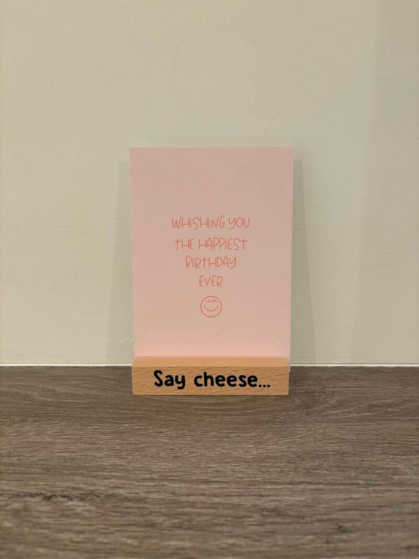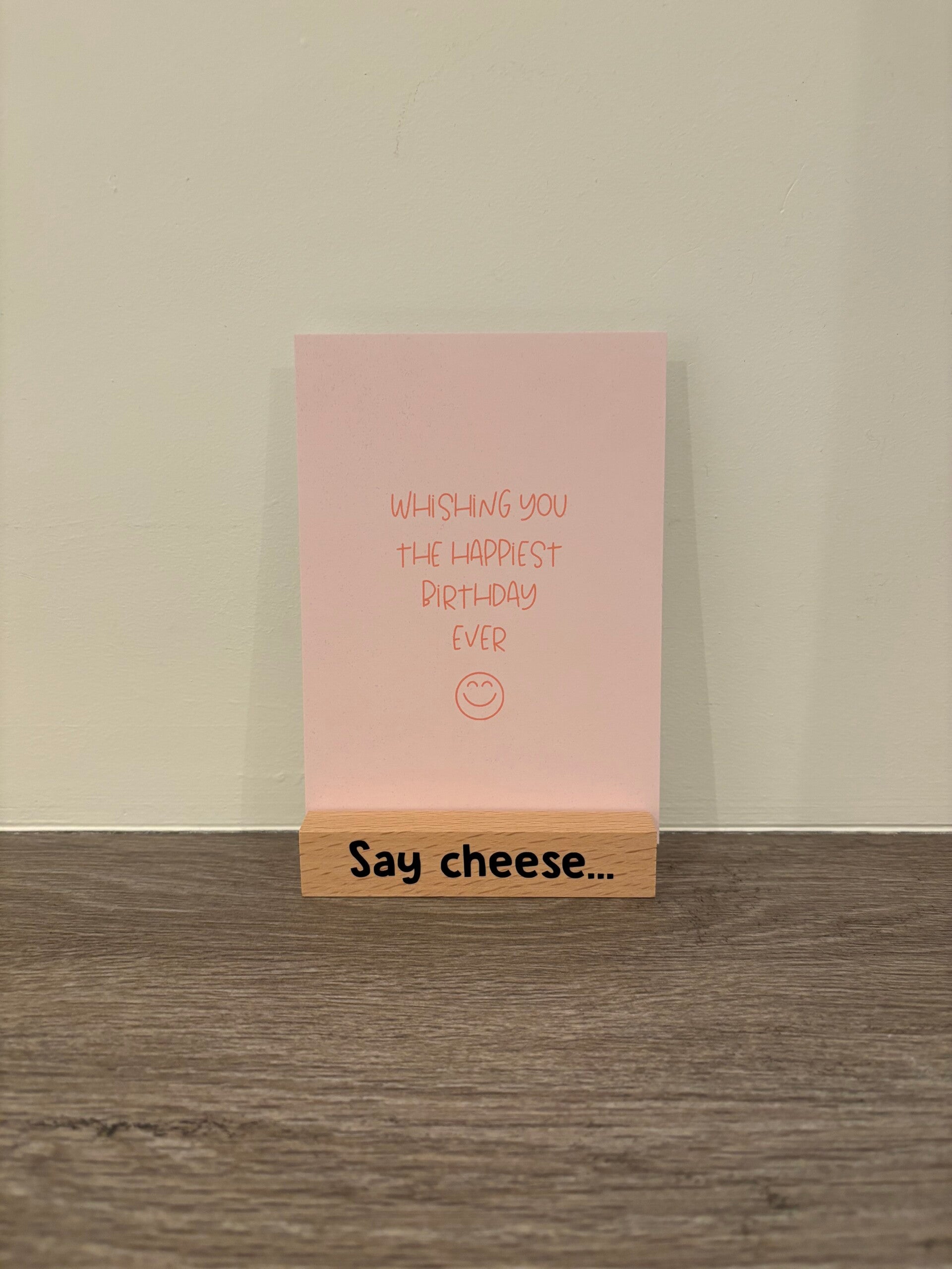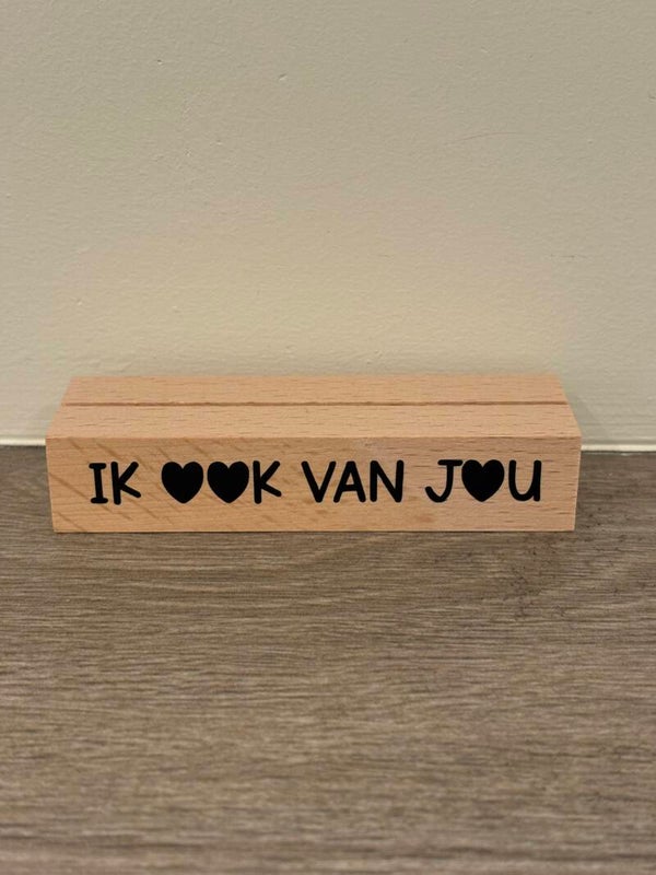 Dit houten blokje is perfect om een kaart, foto of lieve boodschap neer te zetten. Mooi op een plankje, bureau of in de kinderkamer.